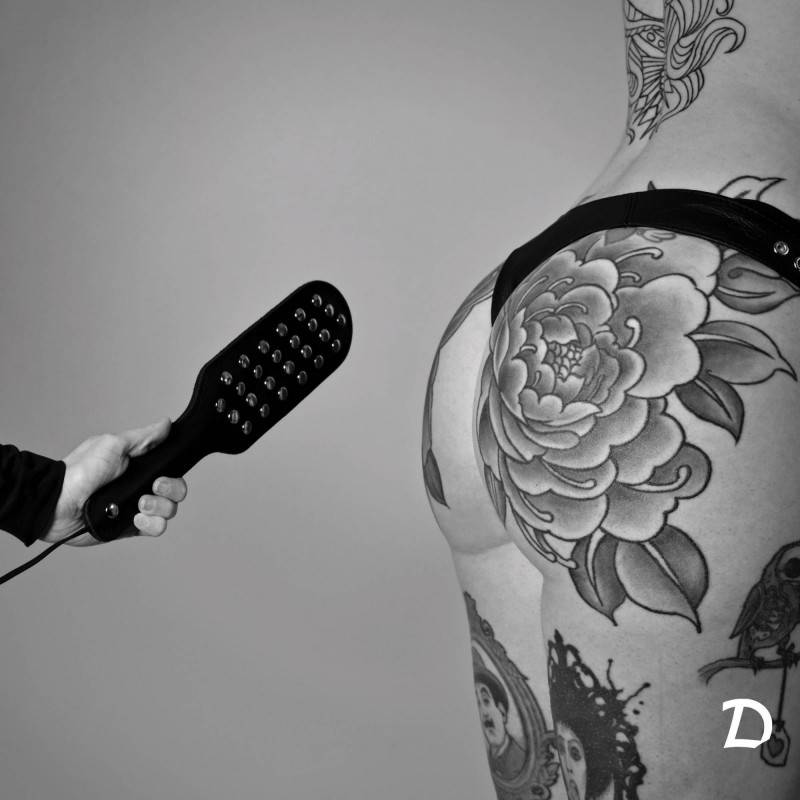 Kleines Lederpaddle mit leitfähigen Nieten für die Elektrostimulation.