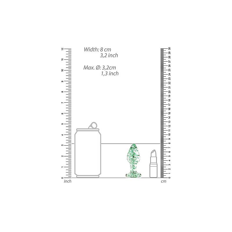 glasplug, der mit neongrünem Glitter in der Nacht leuchtet.