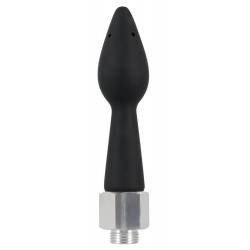 Drücken Sie die geschmierte Spitze des Rosebuds auf die Analpille und schieben Sie sanft. Innerhalb weniger Sekunden wird der fleischige Teil des Plugs geschluckt.