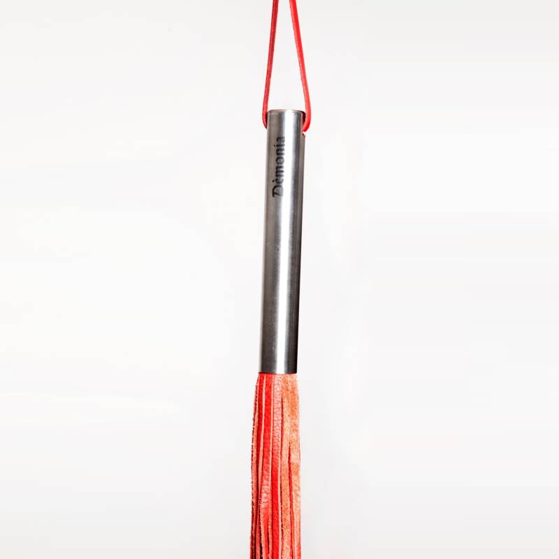 Dieser ist Teil der Dèmonia-Kollektion. Er hat 30 weiche Lederriemen und einen schönen Griff aus rostfreiem Stahl mit dem Dèmonia-Stempel.