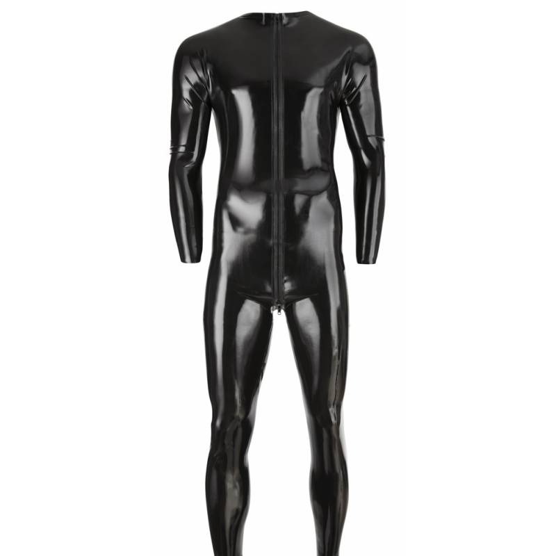 Eng anliegender Overall mit Fußteil und Drei-Wege-Reißverschluss über dem Gesäß. Ein absolutes Schmuckstück für jede Fetischgarderobe.