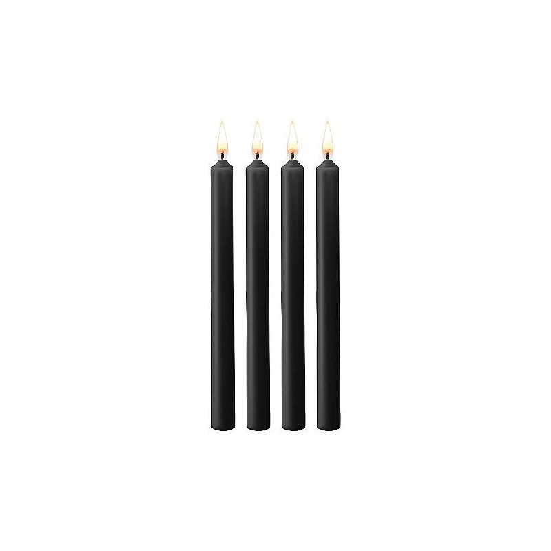 Set mit 4 schwarzen Paraffinkerzen.