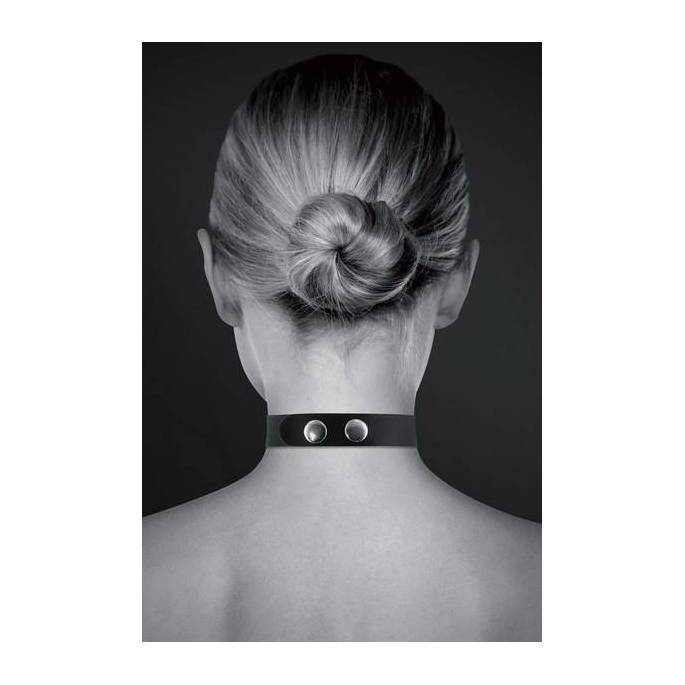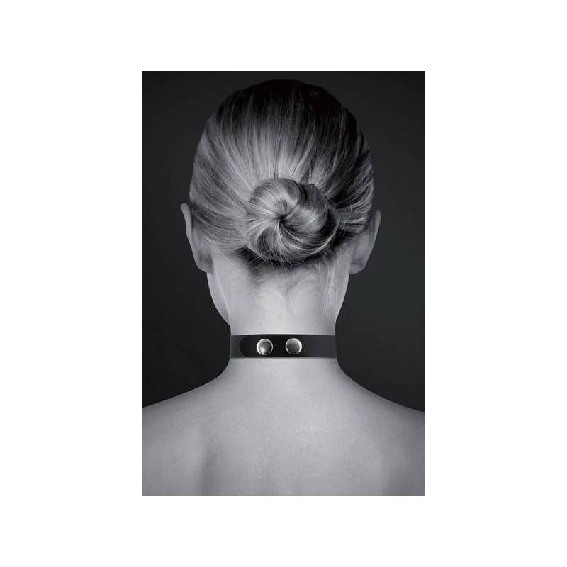 Hübsches SM-Halsband aus schwarzem Leder. Mit Druckknopf verstellbar.