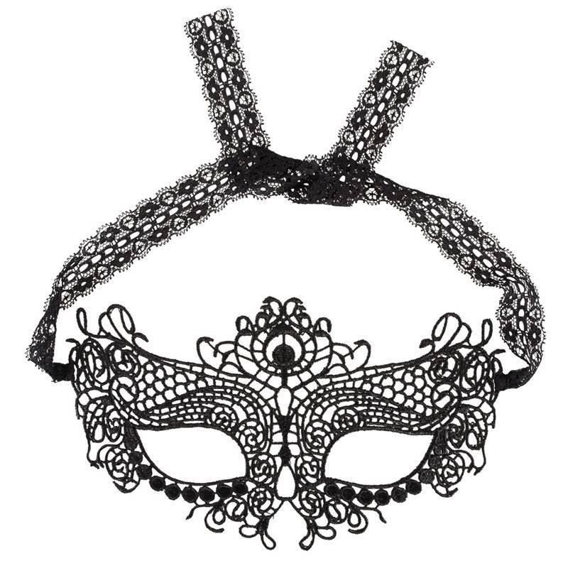 Spitzenmaske großer Schmetterling, aus schwarzem Polyester, mit gestickten Motiven.
