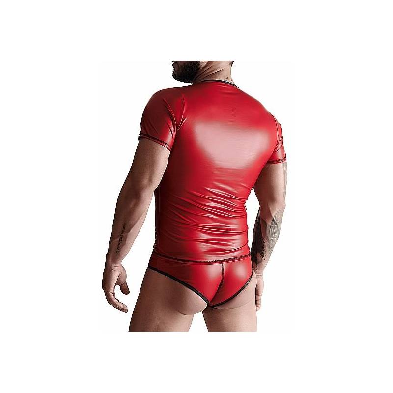 Eng anliegendes T-Shirt aus rotem Wetlook.