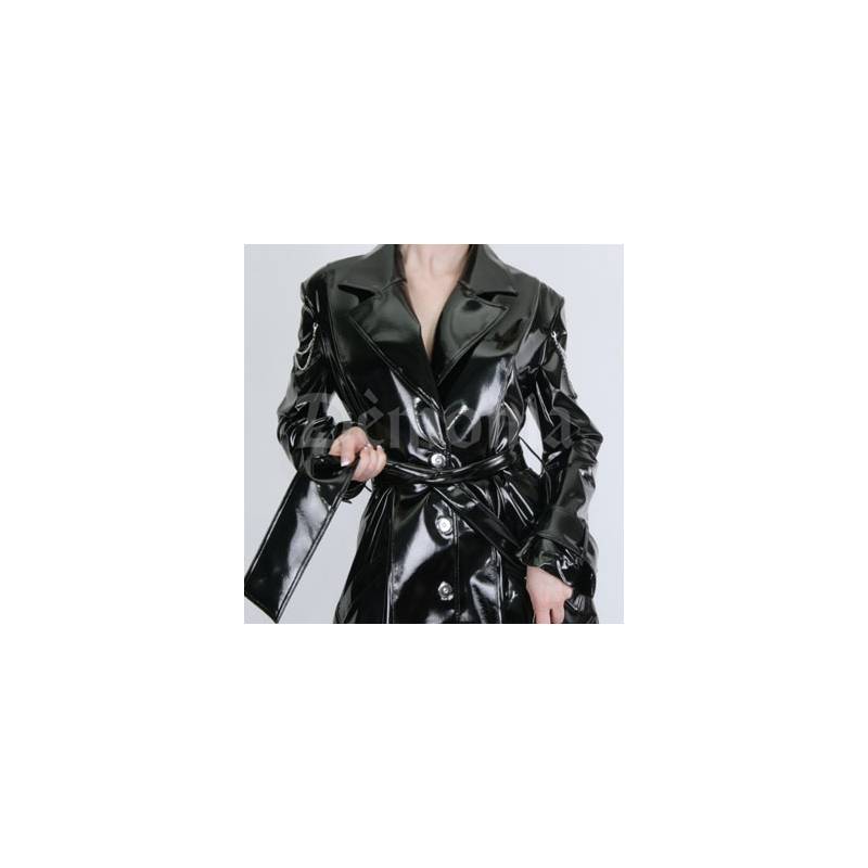 Sehr schöner Mantel mit Druckknöpfen, Vinylgürtel und einer kleinen Kette an der Schulter.