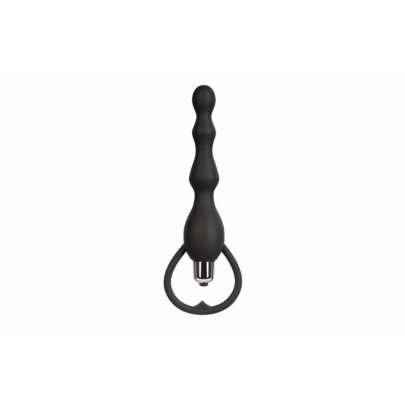 Schwarze, vibrierende Analkette aus Silikon mit einem großen, weichen und dünnen Griff.