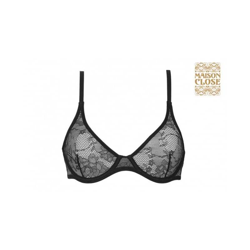 Wunderschöner Balconnet-BH komplett aus schwarzer, dehnbarer Spitze.