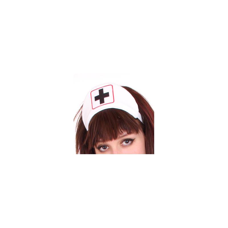 Sexy Krankenschwester-Set aus weißem Vinyl, bestehend aus einem weißen Minikleid und einer kleinen Kopfbedeckung, ebenfalls aus weißem Vinyl.