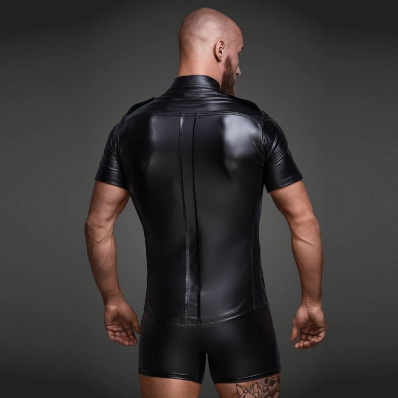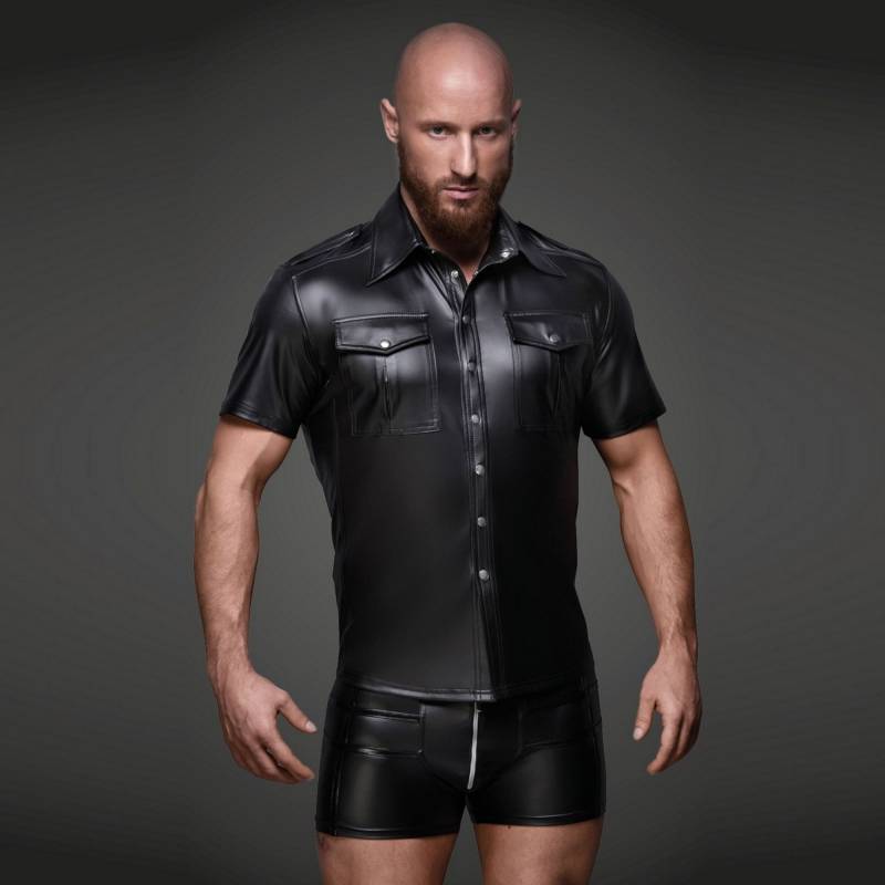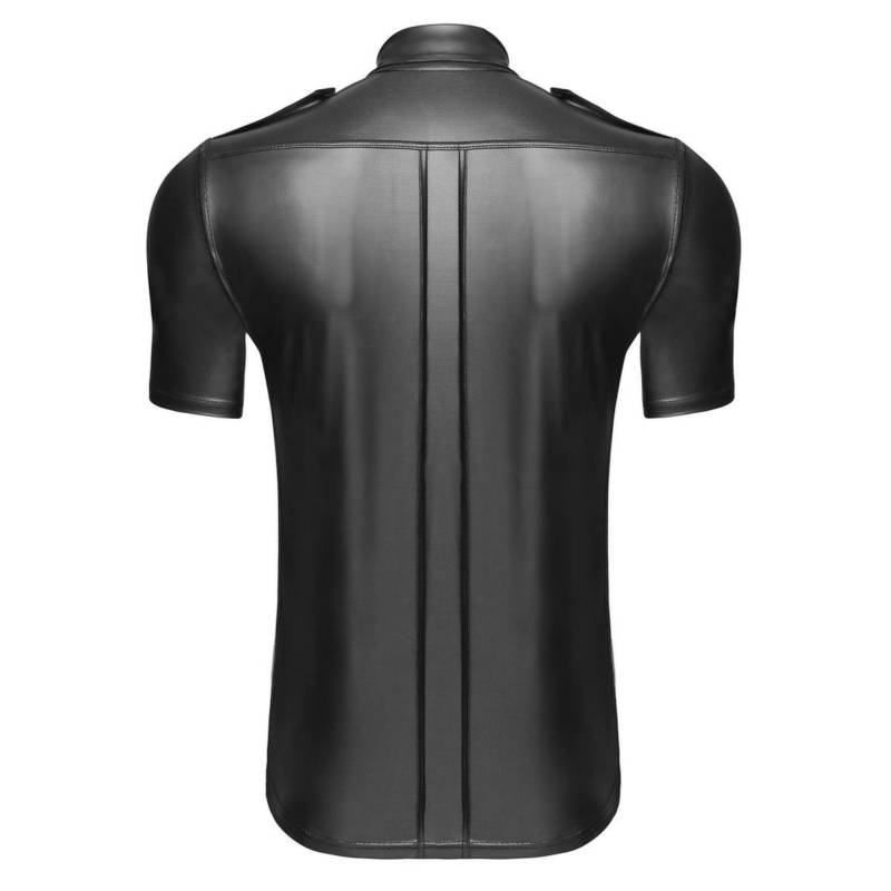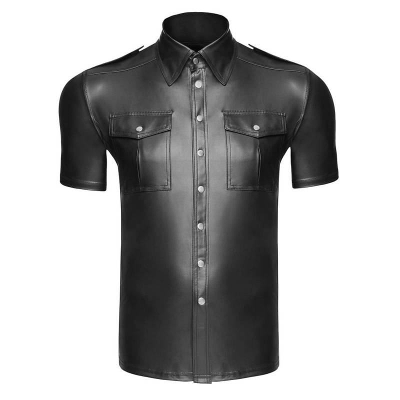 Entscheiden Sie sich für das Wetlook-Hemd mit Vordertaschen von Noir Handmade und unterstreichen Sie Ihren Stil mit einem Hemd, das Kühnheit, Verführung und Komfort vereint.