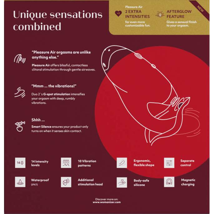 Alles in allem ist der Womanizer Duo 2 eine erstklassige Wahl für Frauen, die auf der Suche nach einem intensiven, individuell anpassbaren und hochwertigen sexuellen Erlebnis sind.