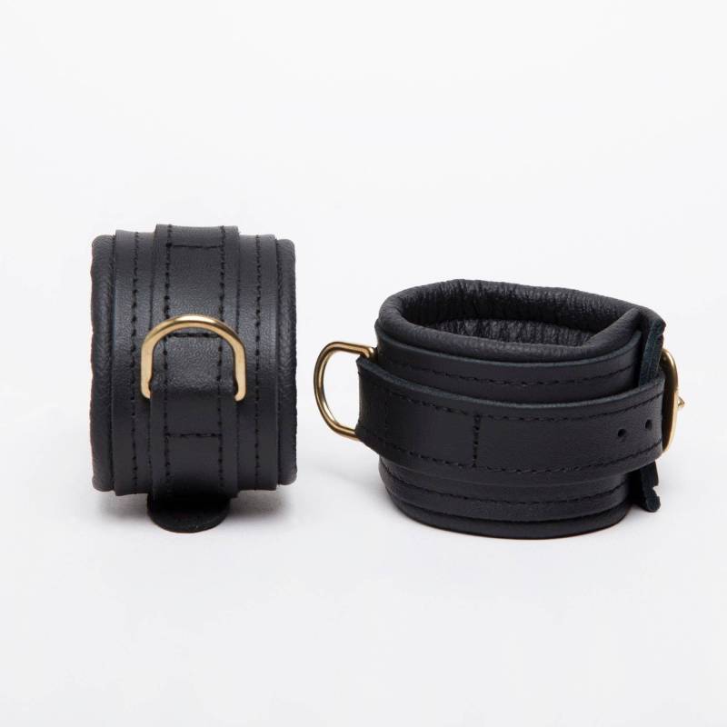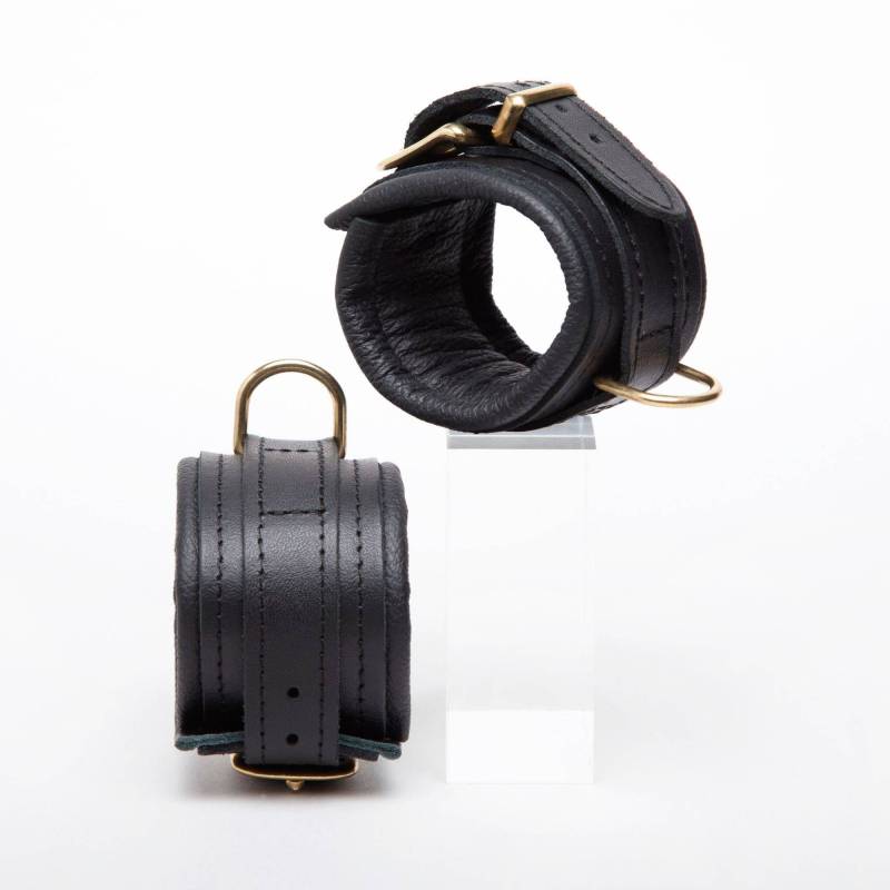 Stärken Sie die Komplizenschaft indem Sie Ihren Gefühlen freien Lauf lassen fantasien...By Dèmonia Fußfesseln aus schwarzem Leder Goldener Ring