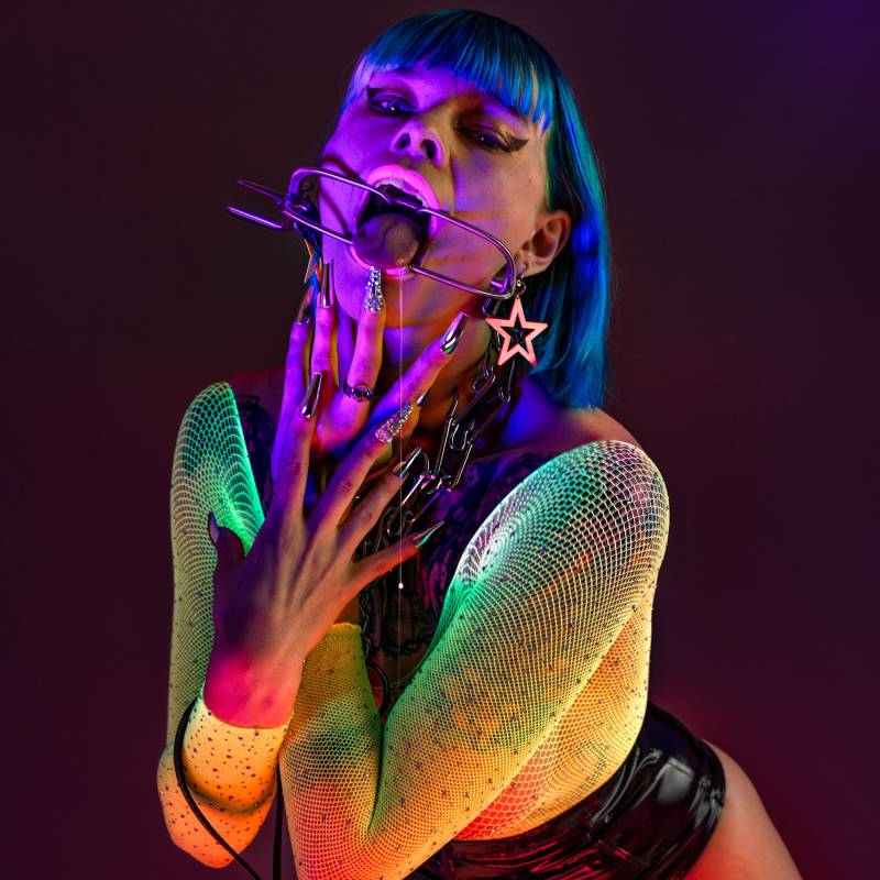 Leather harness, also taking the thighs.Riveted leather and 9 metal rings Collar not included