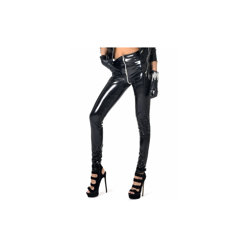 Very sexy and trendy vinyl treggings pants with high waist and 3 sliders allowing games at will.