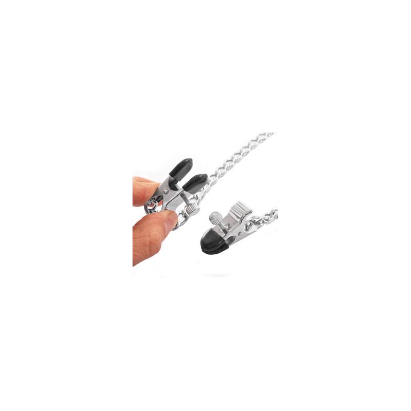 Wide and adjustable breast clamps connected by a beautiful steel chain.