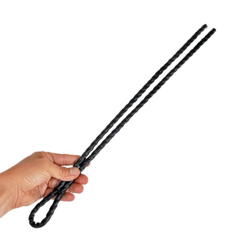 Badine composed of 3 braided strands covered with black latex and folded to form a loop and two tips