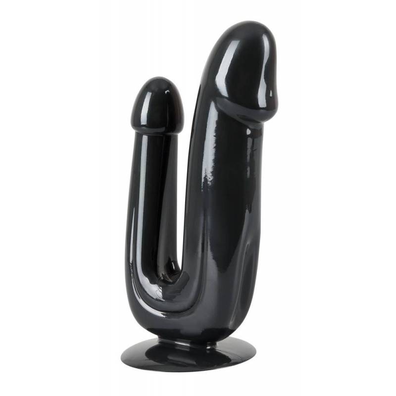 Double black flexible dildo for double penetration.