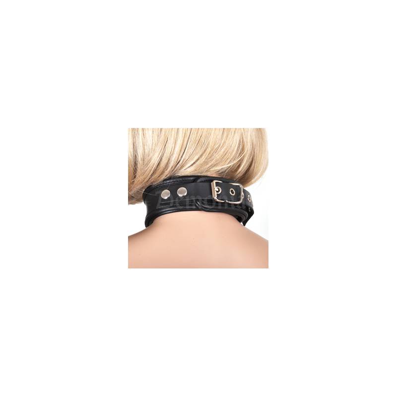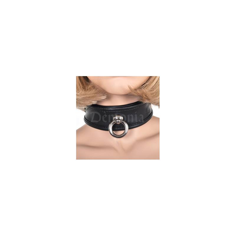 Lined leather necklace, with 2 riveted straps and an adjustable buckle to close it and a beautiful chrome steel ring.