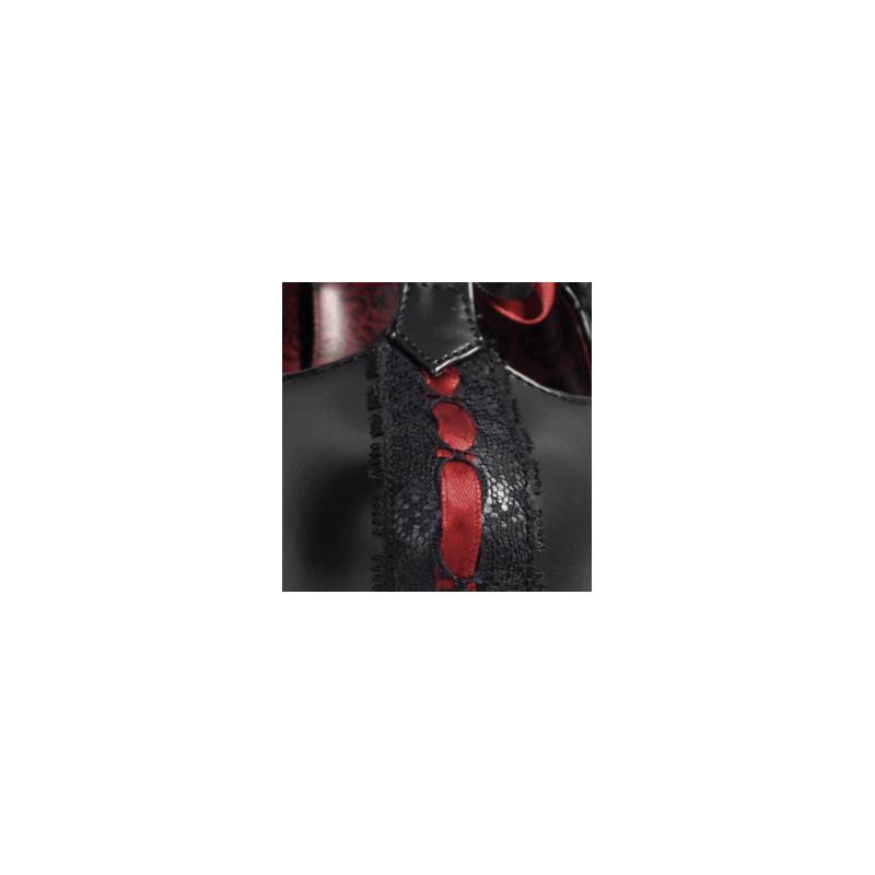 A successful marriage between lace and faux leather.