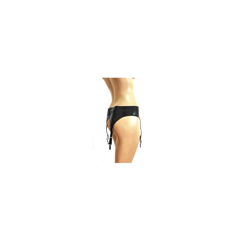 Black suspender belt closing behind by 2 pressures, with 4 adjustable wide grips in elastic fabric.