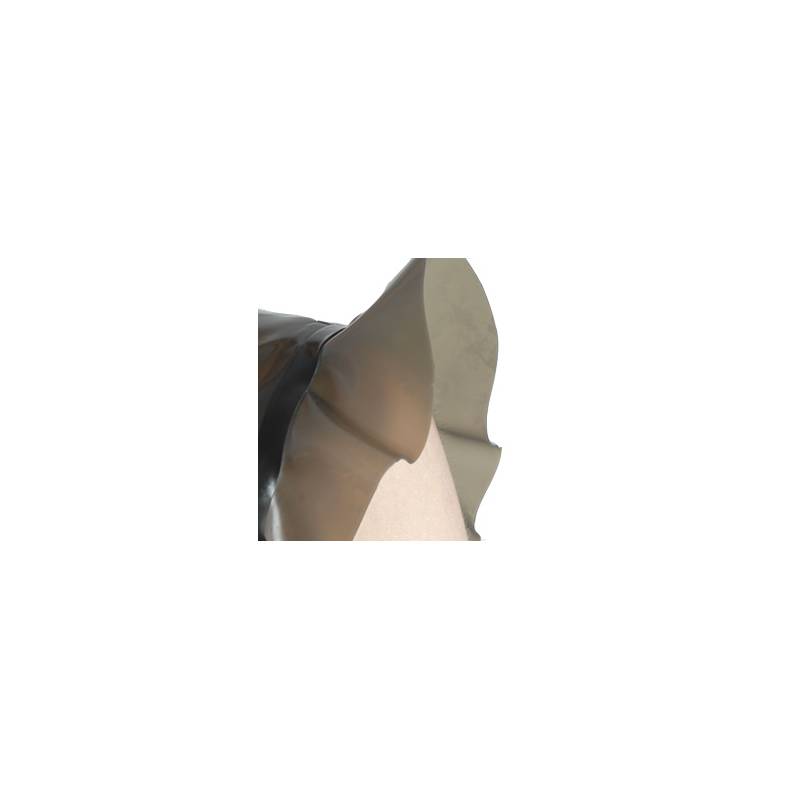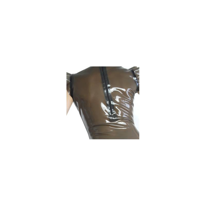 Sleeveless bodysuit with a frill on each side of the shoulders and on the top of the thighs, a zip at the back and a large neckline in front.
