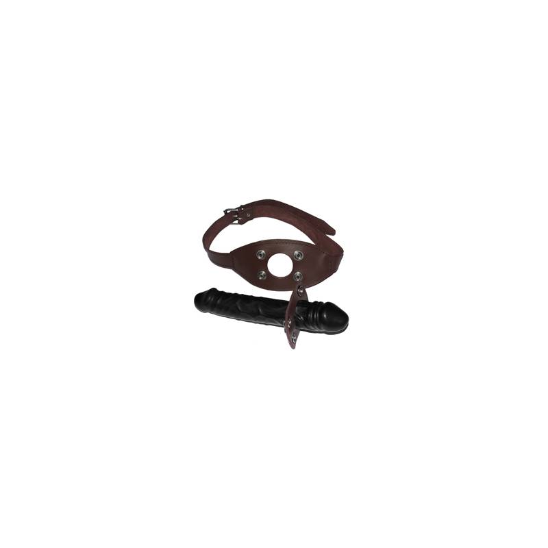 BROWN GAG WITH 2 DILDOS - INTERNAL + EXTERNAL