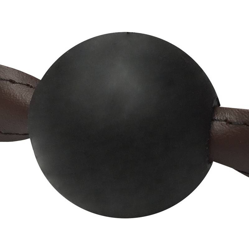 Very nice ball gag with soft brown leather straps and full ball in latex both flexible and compact. The straps are riveted on rings to the gag.