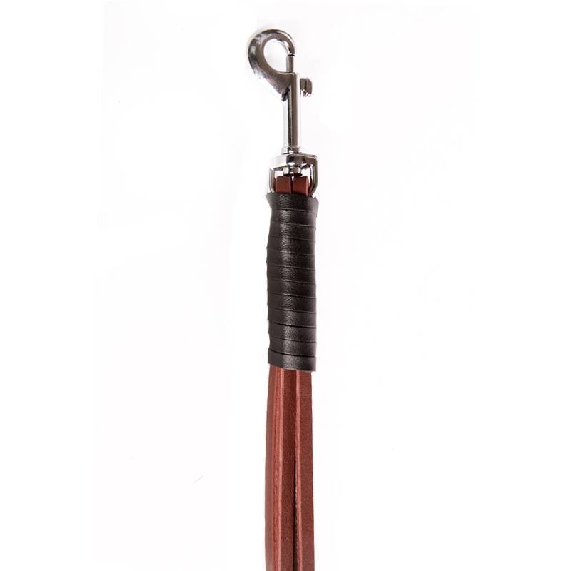Brown hard leather swift, 6 strands, which means that it is rather severe!