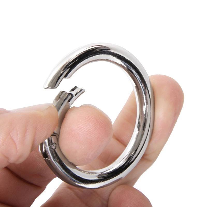 Magnificent original and aesthetic carabiner, in the shape of a ring with a push opening, easy to use and preventing any untimely opening.
