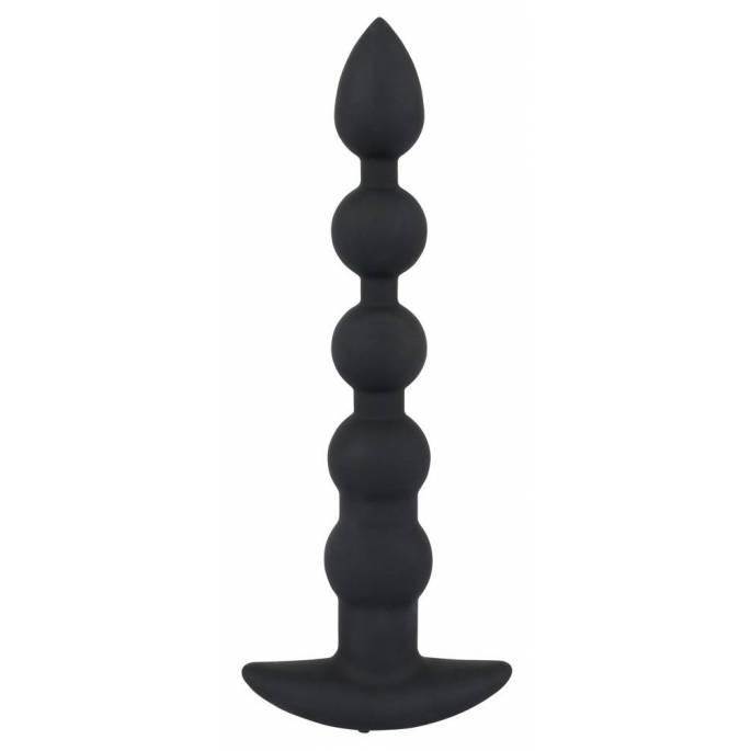 Vibrating anal rosary composed of beads of different connection, to provide intense sensations. The insertion beads are cone-shaped for a pleasant use.