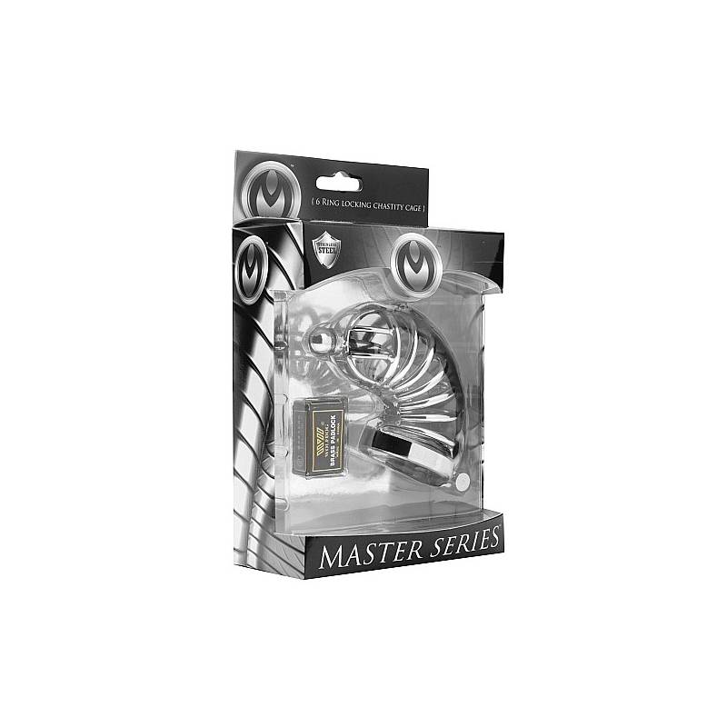 Chastity cage all in stainless steel with 6 rings and a urethral rod also in stainless steel and hollow for a long duration.