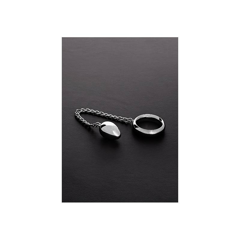 A toy that fulfills all your wishes at once. On the one hand a massive heavy penis ring that firmly envelops the base of your penis, and on the other hand an anal egg attached with a shiny chain that massages your prostate in a pleasant way.