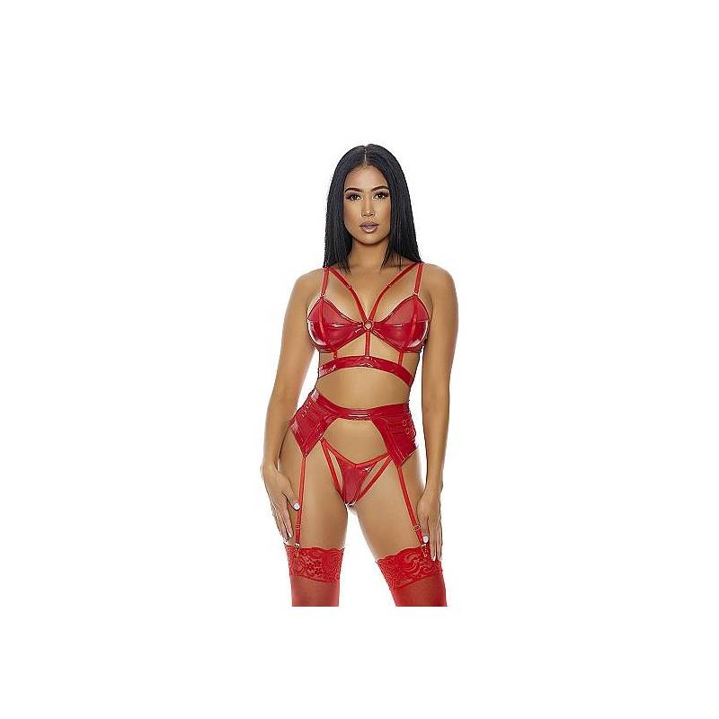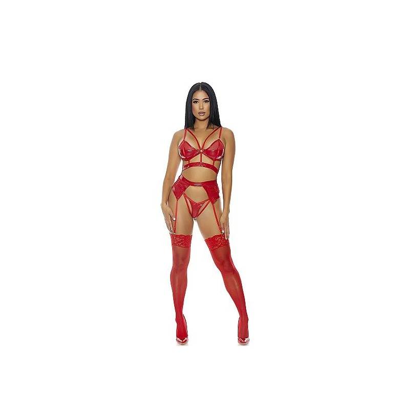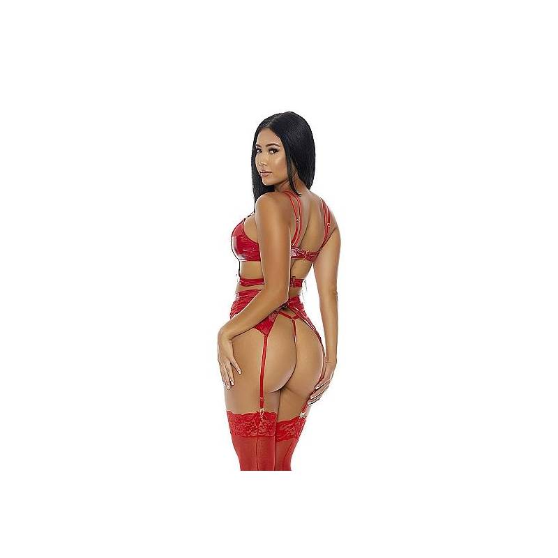 Thong cut-out front and matching garter belt.
