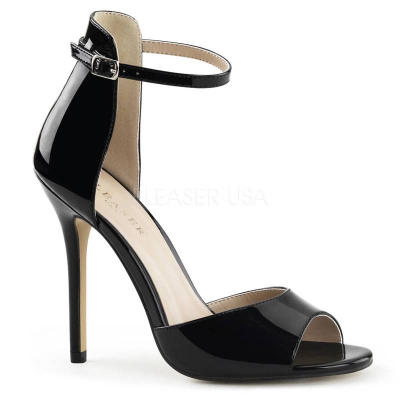 Black patent open pumps. With thin strap on the ankle, to highlight it.