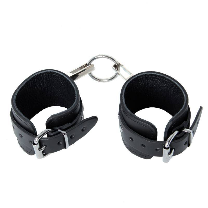 Black leather handcuffs adjustable (7 positions)