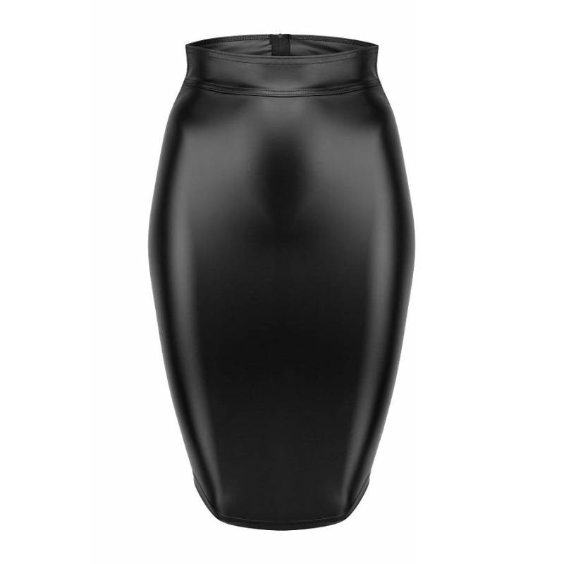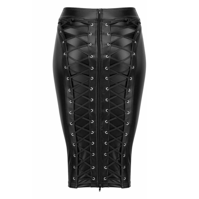 PENCIL SKIRT WETLOOK LACE BACK