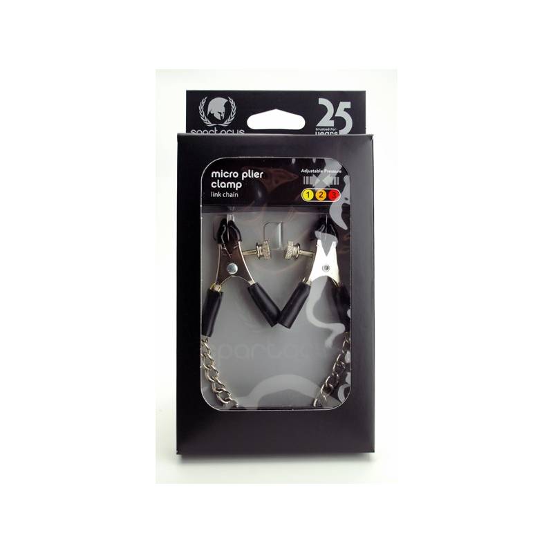 Metal nippers from Spartacus with black PVC protections adjustable by screws and linked together by a chain.