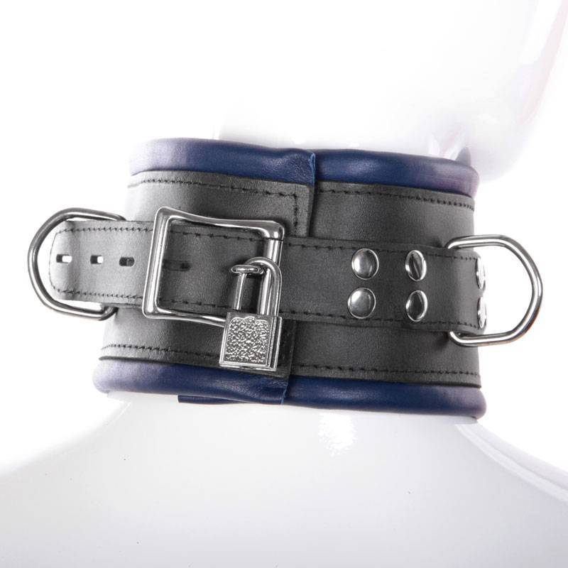 LARGE LEATHER COLLAR BLACK/BLUE PADLOCKABLE