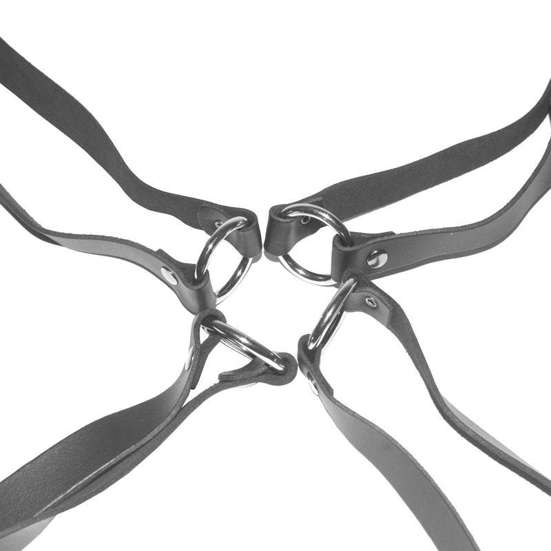 Surround each corner of your mattress with a leather strap, making sure that the metal loop is in the right place to hang your favorite means of restraint (handcuffs / ropes / fabric ties ...).