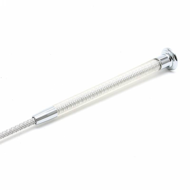 LEATHER WHIP WITH TRANSPARENT SILVER HANDLE