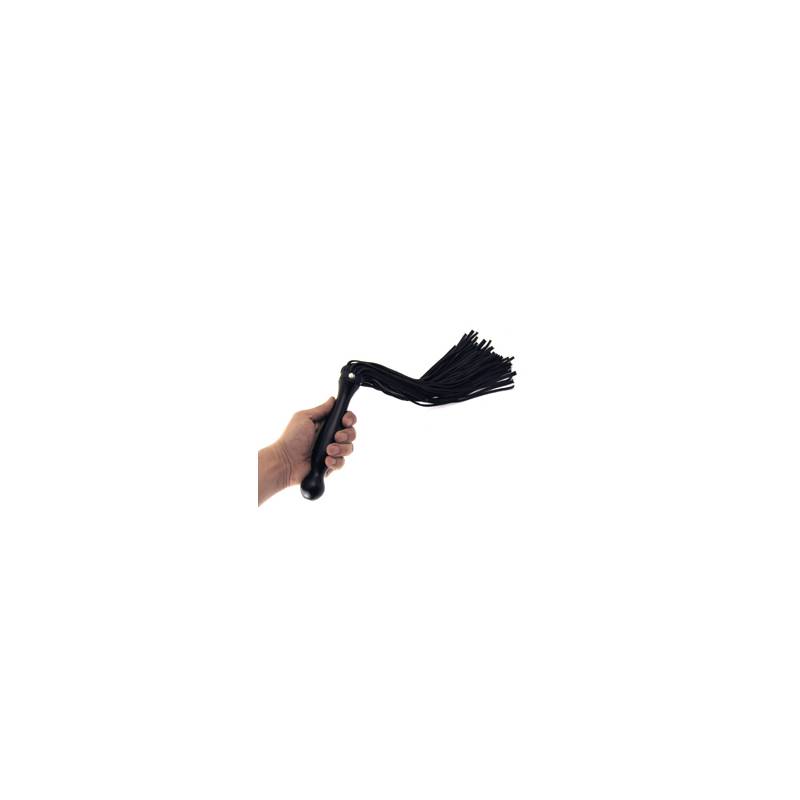 Leather martinet with straps, the handle can be used as a dildo as long as you put a condom on it.