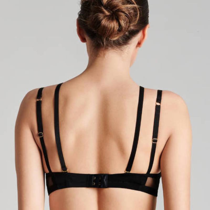 Black bra in tulle and microfiber for a subtle mix of materials.