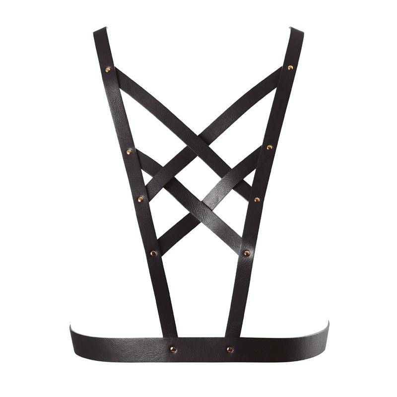 Black Crossed Harness "MAZE" by Bijoux Indiscrets. The crossed straps of this harness will emphasize your chest area. To be combined with outfits, lingerie or to be worn next to the skin. The straps of this accessory can be crossed in the back.