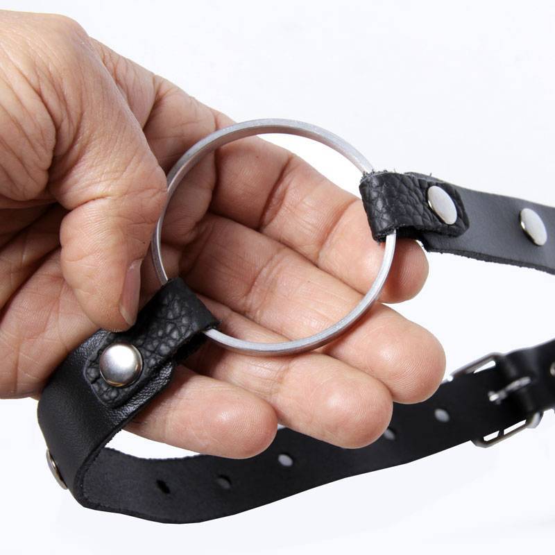 Large flat metal ring connected by 2 smaller, more flexible and riveted straps.