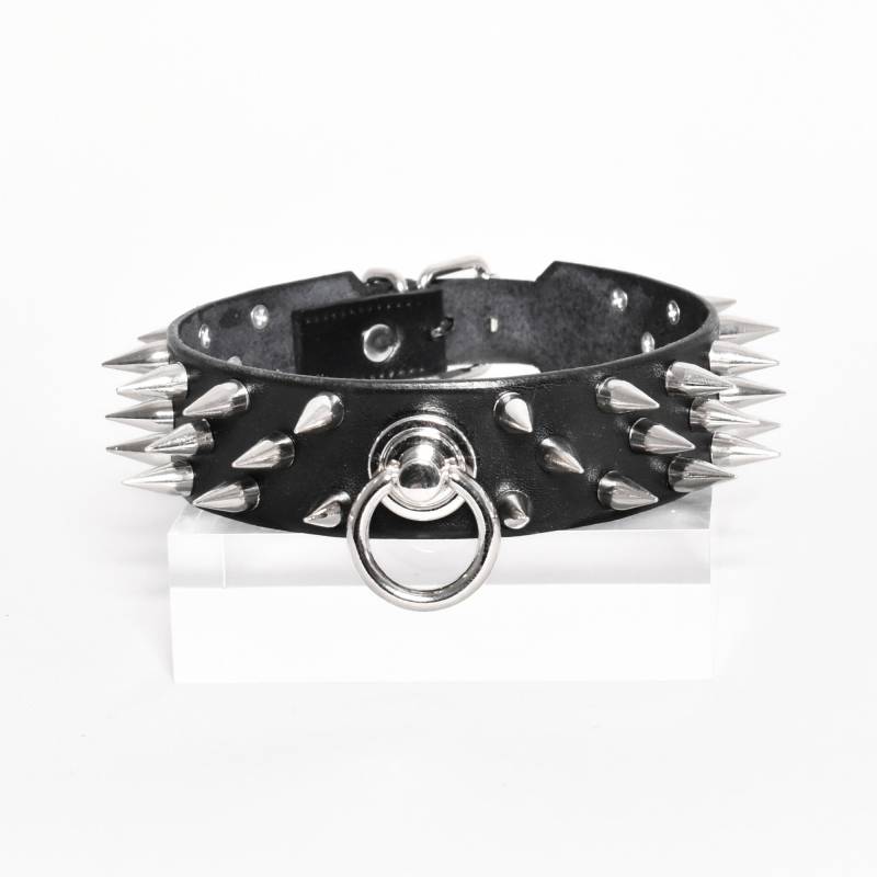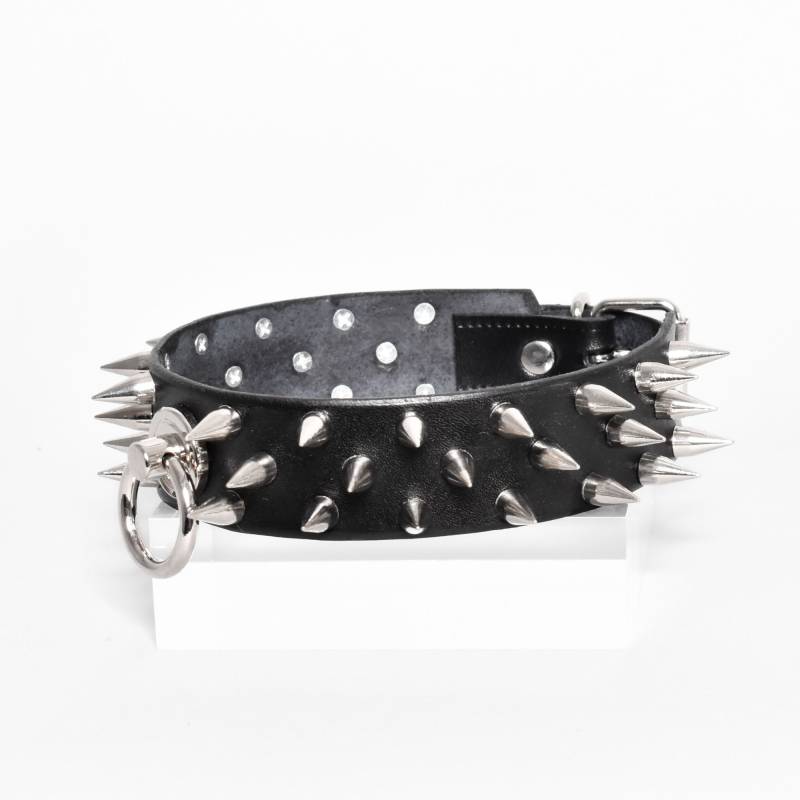 Its width is 3cm, it has three rows of spikes giving it a certain weight and a nice stainless steel ring.
