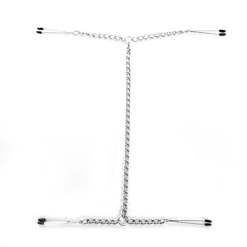 Chrome chain with four clamps. 2 clamps for breasts, and 2 clamps for lips, sex, testicles or other...