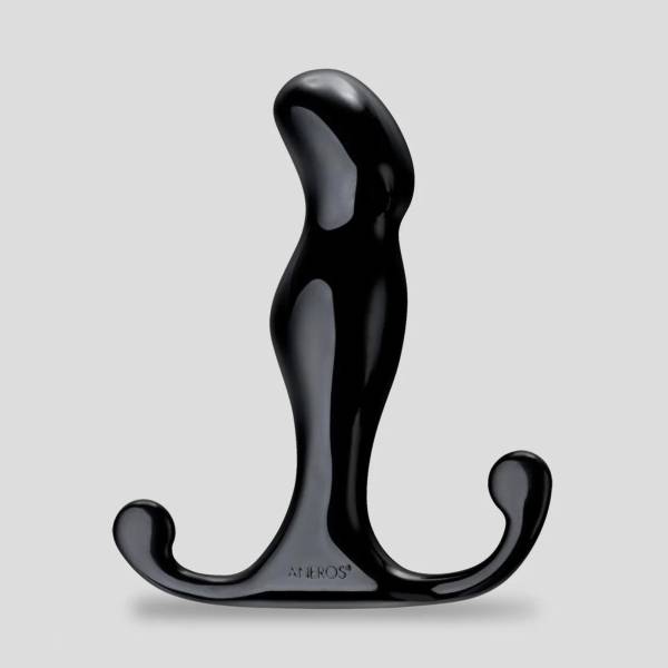 Vibrating and electro stimulating prostate massager in black silicone.