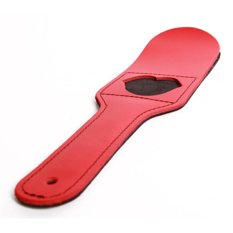 This paddle is made of thick red leather on one side and thick black leather on the other side. The tip of the paddle dissociates the 2 leather bands offering a slapper effect!
