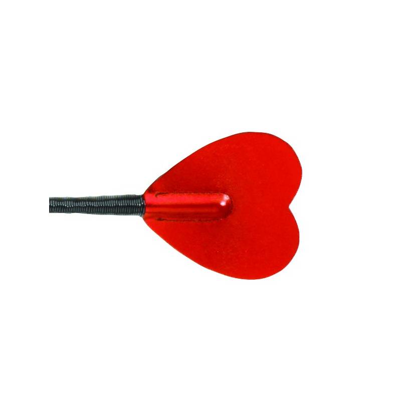 Long whip from Spartacus, with a black leather heart covered with shiny red leatherette, two small metal tips enhance the line of this very nice whip.