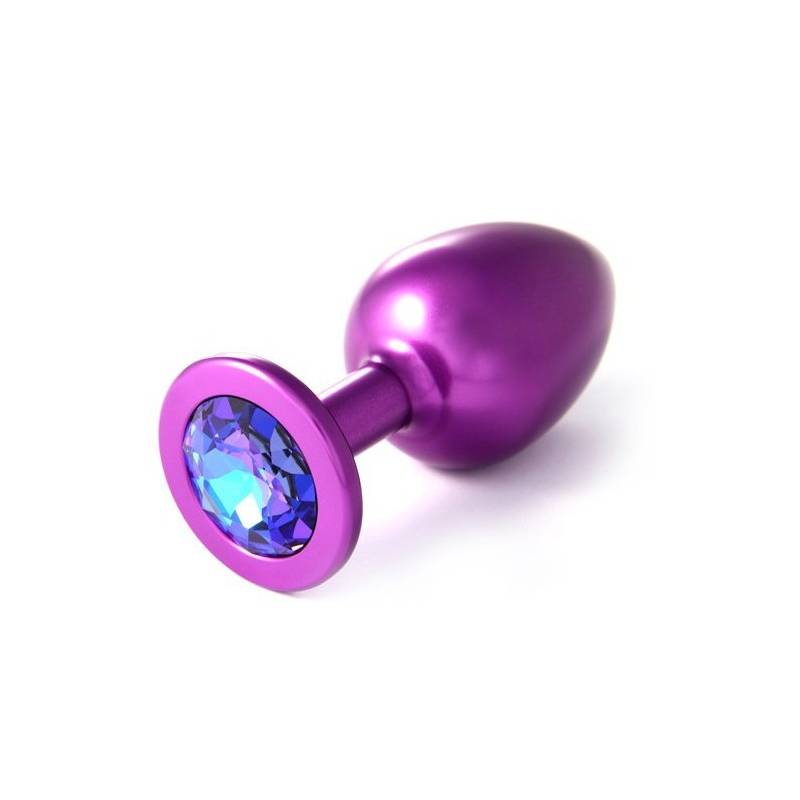 Anal jewel of the brand "Rosebud", in purple Aluminium and Swarovski stone "Helotrophe" at its end.